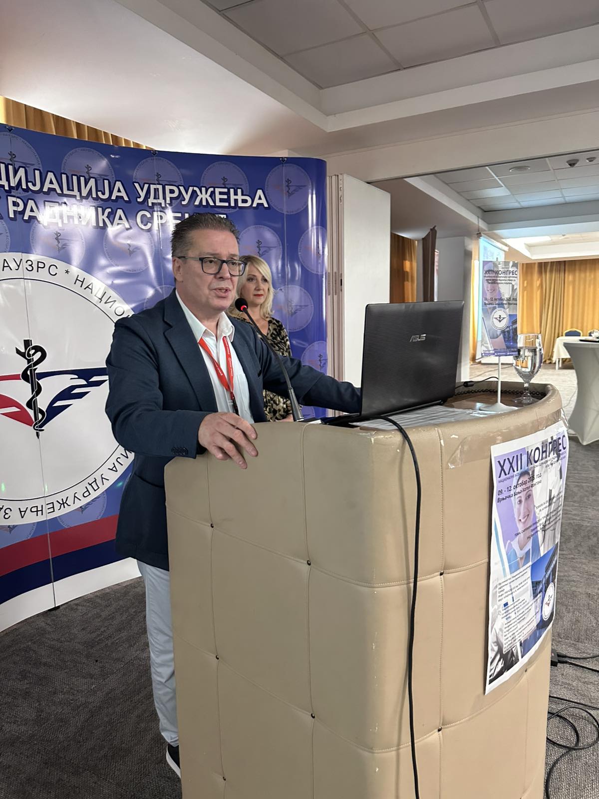 Успешно завршен XXII Конгрес Националне асоцијације удружења здравствених радника Србије са међународним учешћем који се одржао у периоду од 09. до 12. октобра 2025. године у Хотелу Фонтана у Врњачкој Бањи. Пленарна тема Конгреса била је Савремени принципи терапије прехладе и грипа, предавача Проф.др Дејана Ружић Зечевић, УКЦ Крагујевац, Факултет медицинских наука, Универзитет у Крагујевцу.